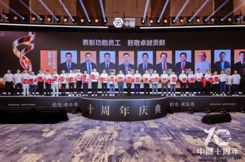 十载时光走来,中膳家人们付出与贡献,为中膳故事刻下不可磨灭的印记。感恩,源于那份坚守,源于那份坚持,随后,中膳集团轮值主席黄智勇回溯中膳十年来的足迹,迎来了中膳荣誉加冕的时刻——颁奖仪式,为奋斗数载的中膳奋斗者们给予认可与表彰。